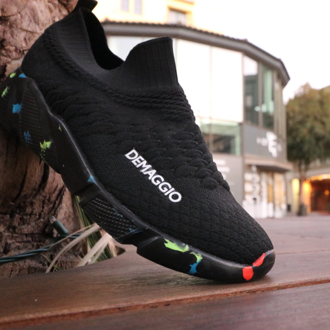 The Demaggio 1s is a slip on ( no lace) shoes; easy to wear and more relaxed than laced shoes. Its upper is perfectly knitted and delivers breathability. It feels more like a lightweight socks than a shoe. This unisex shoe has an outer sole that gives support and flexibility which also prevents injuries and improves performance. The insole is made of soft but elastic materials which makes it suitable for all climates. It is the perfect choice for daily shoes, it's suitable for running, gym, casual walk, and everyday wear.
